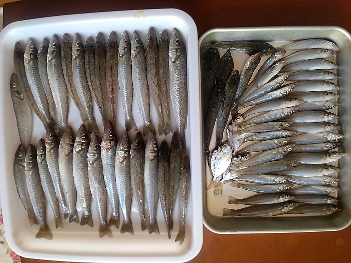 6投目練り餌が残る、チャンス!しかし、釣れて来たのは20cmのチャリコ、気配あるが同型チャリコ3尾追釣、その後、アイゴの嵐になり、気配無くなる⤵