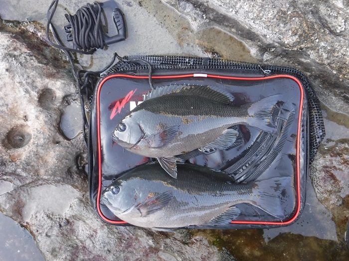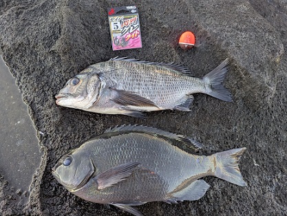【釣果】クロダイ2尾、メジナ11尾(最大43㌢)、サッパ12尾